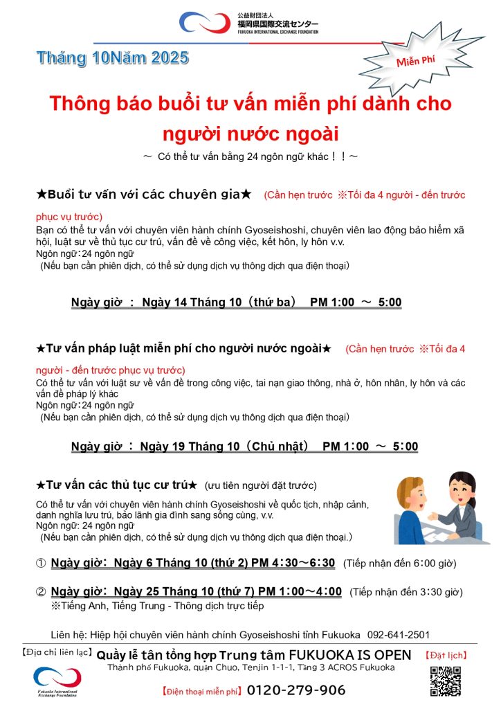 Home Thông báo buổi tư vấn miễn phí dành cho người nước ngoài! Thông báo buổi tư vấn miễn phí dành cho người nước ngoài! 2025.09.28 Sự kiện Trở về Danh sách