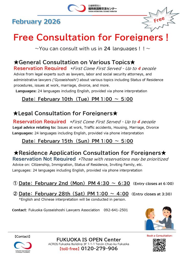 Home Free Consultation for Foreigners! Free Consultation for Foreigners! 2026.02.04 Events Return to list