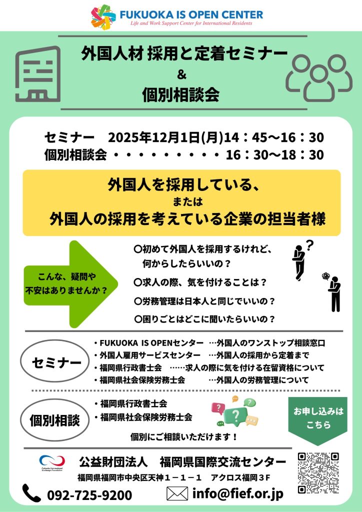 • 外国人材の採用と定着に関する企業向けセミナー及び個別相談会