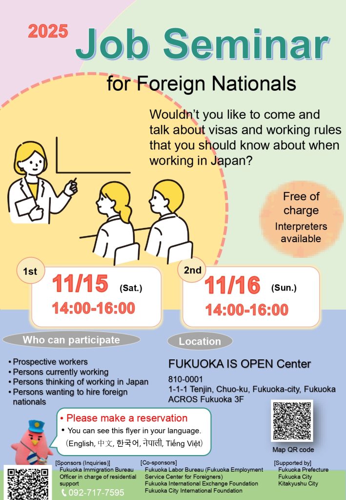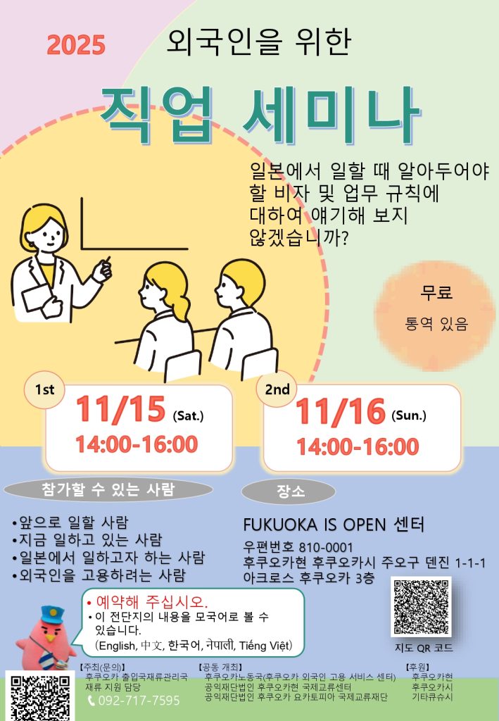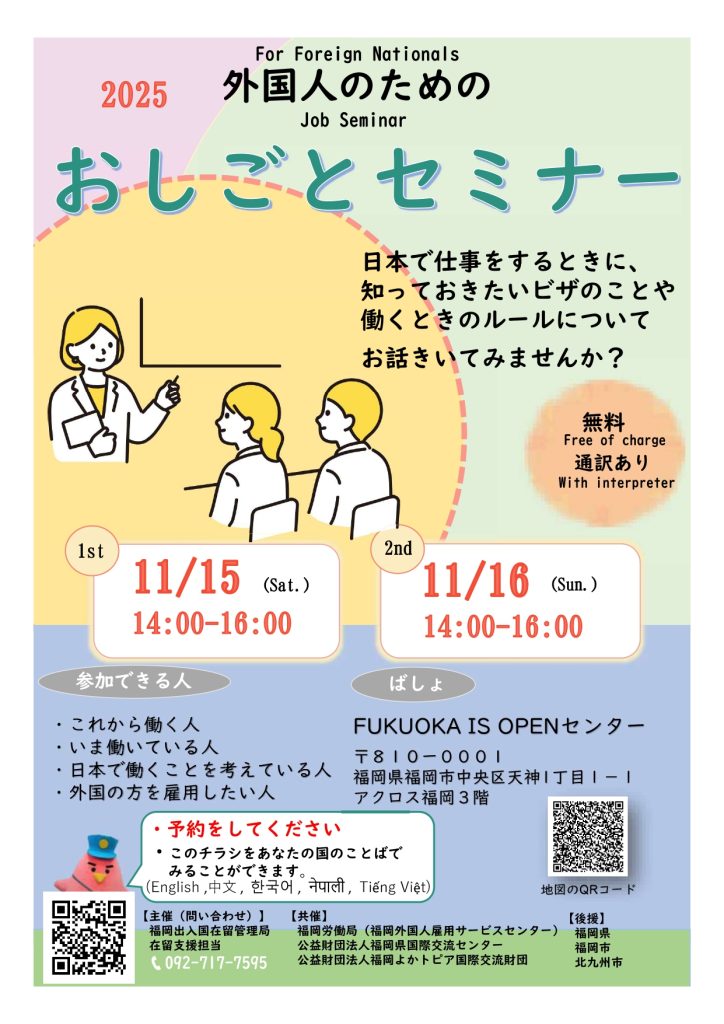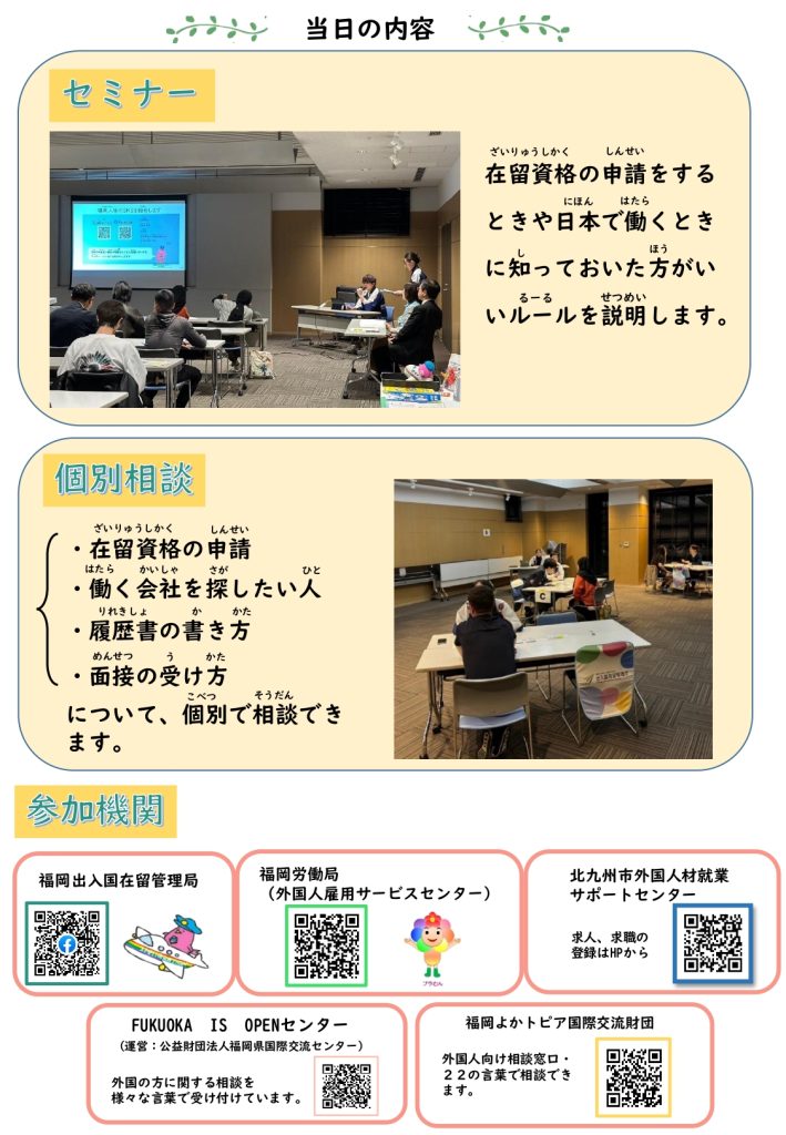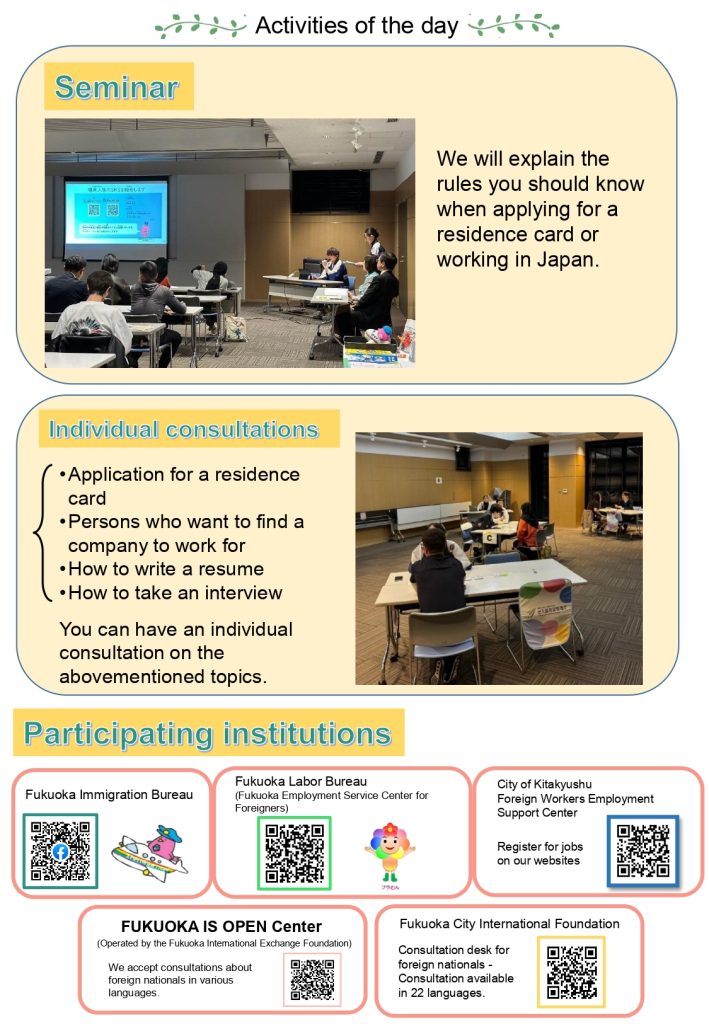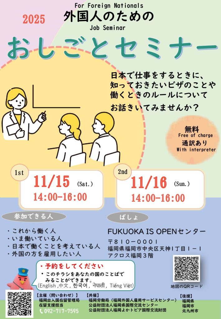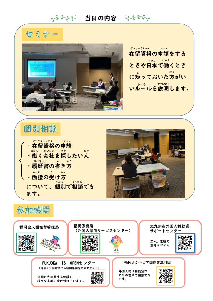 おしごとのことを専門家に相談できます。参加費は無料です。詳しい内容はチラシをご覧ください。予約が必要です。